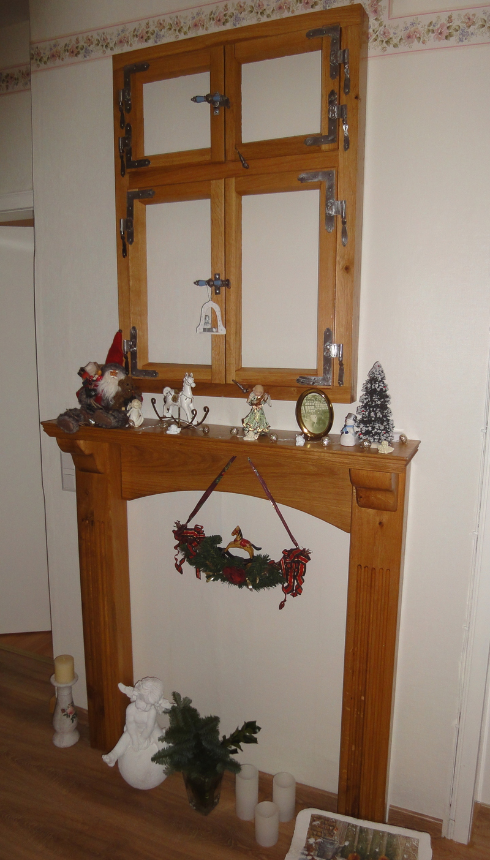 Altes Sprossenfenster mit Kaminsims aus Eiche